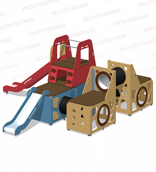 Игровой модуль для тематических игр и физического развития предназначен для детей в возрасте от 4 до 12 лет. Изделие должно представлять собой устойчивую конструкцию, обеспечивающую безопасные условия для занятий на открытом воздухе. Конструкция должна обладать высокой ударопрочностью и виброустойчивостью.